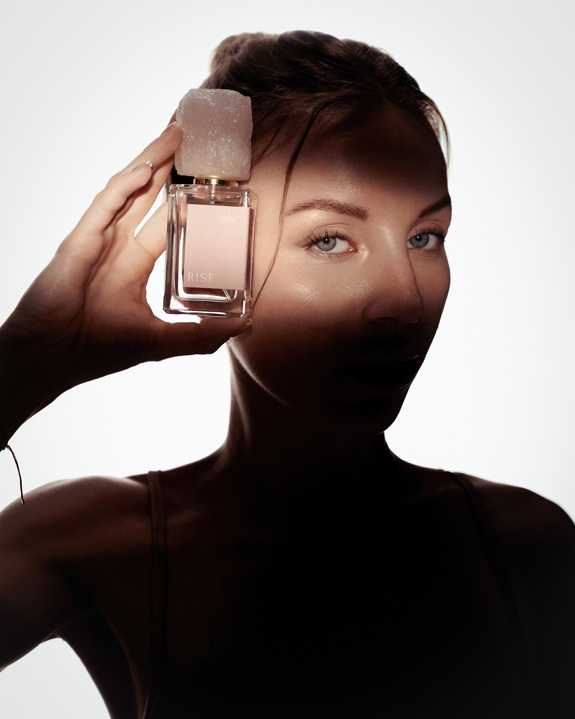Rose quartz has been revered for centuries as the stone of the heart. It radiates softness, compassion, balance, and self-love. It resonates with the luminous essence of RISE, an intimate light that radiates with elegance.