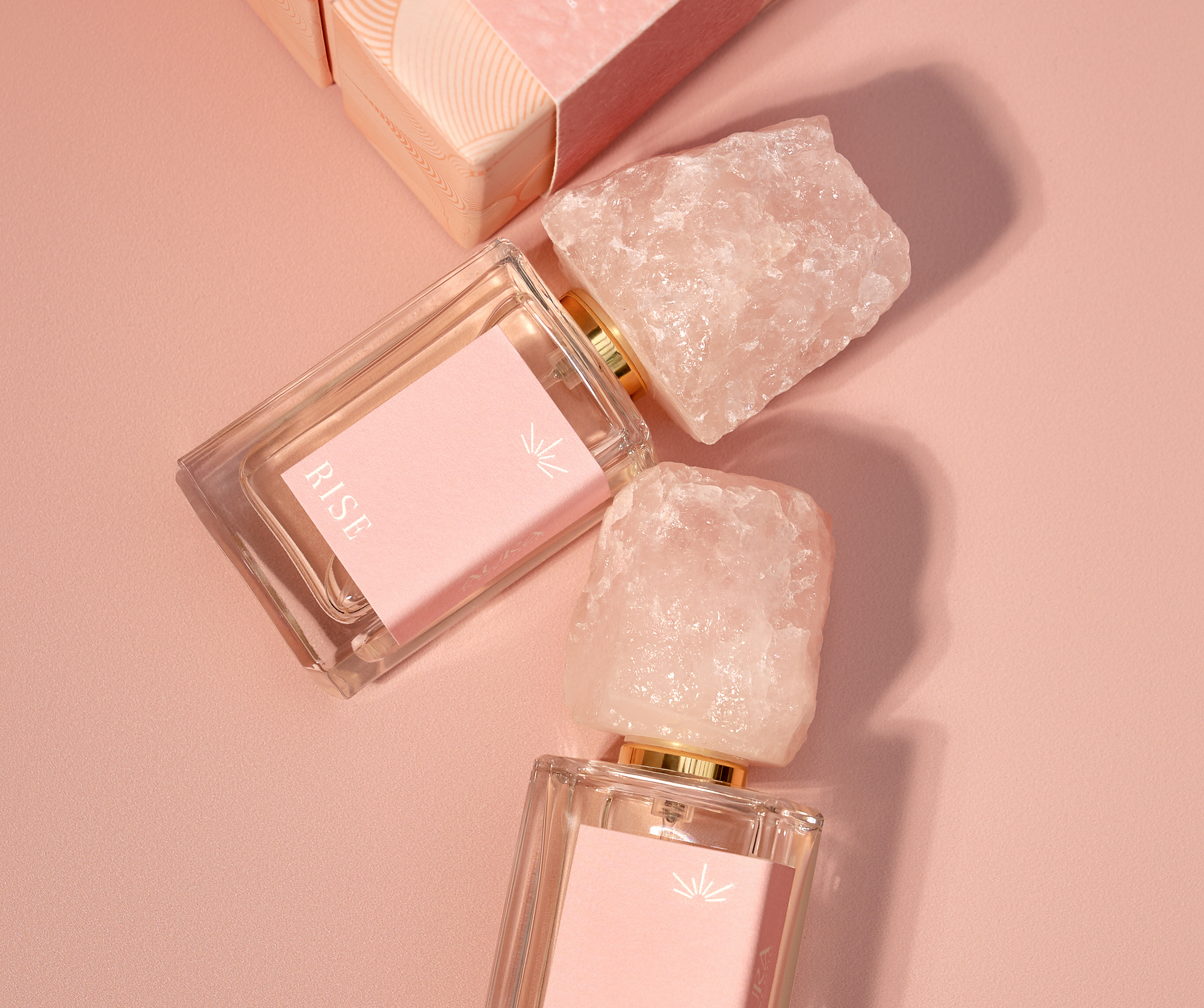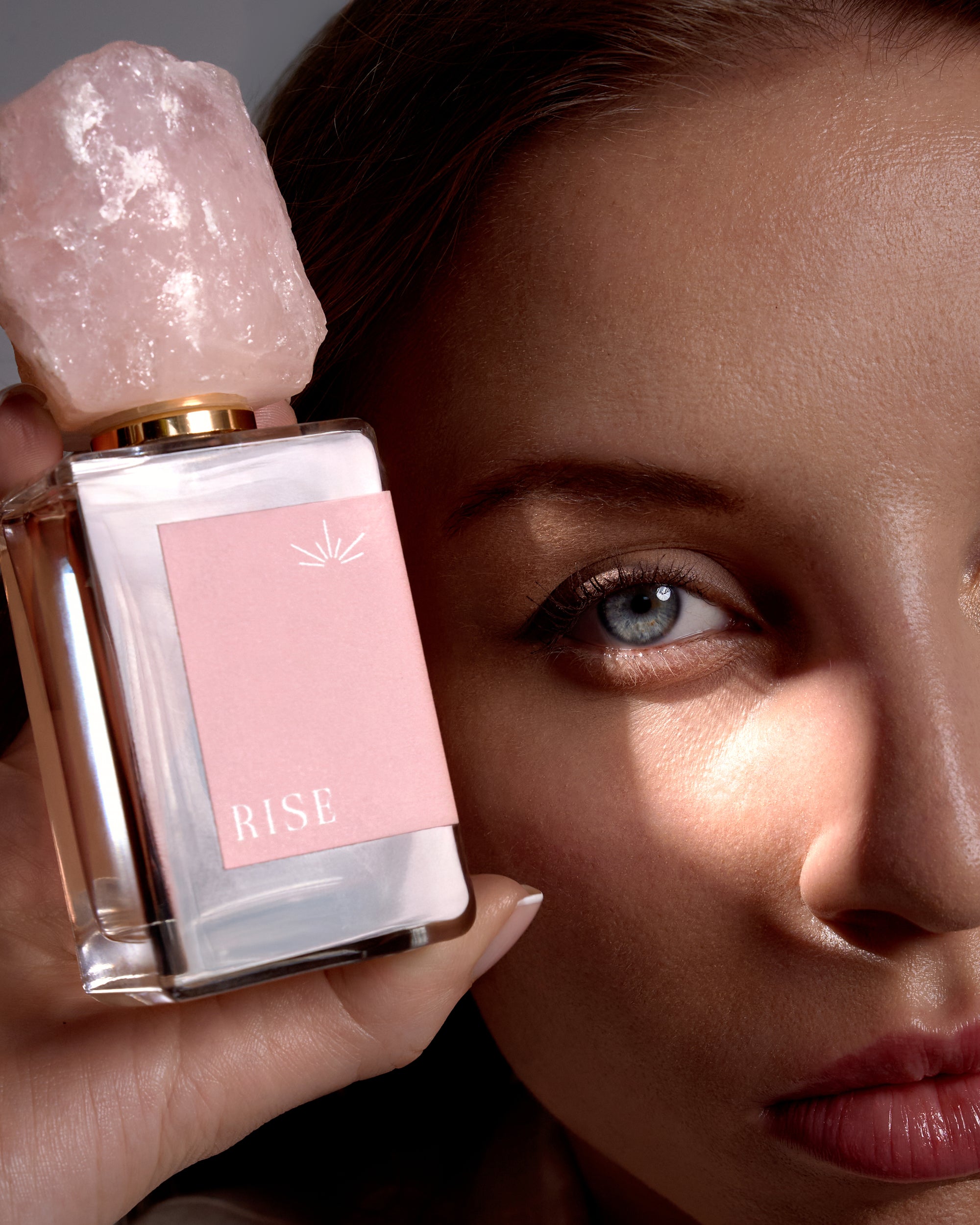 Rose quartz has been revered for centuries as the stone of the heart. It radiates softness, compassion, balance, and self-love. It resonates with the luminous essence of RISE, an intimate light that radiates with elegance.